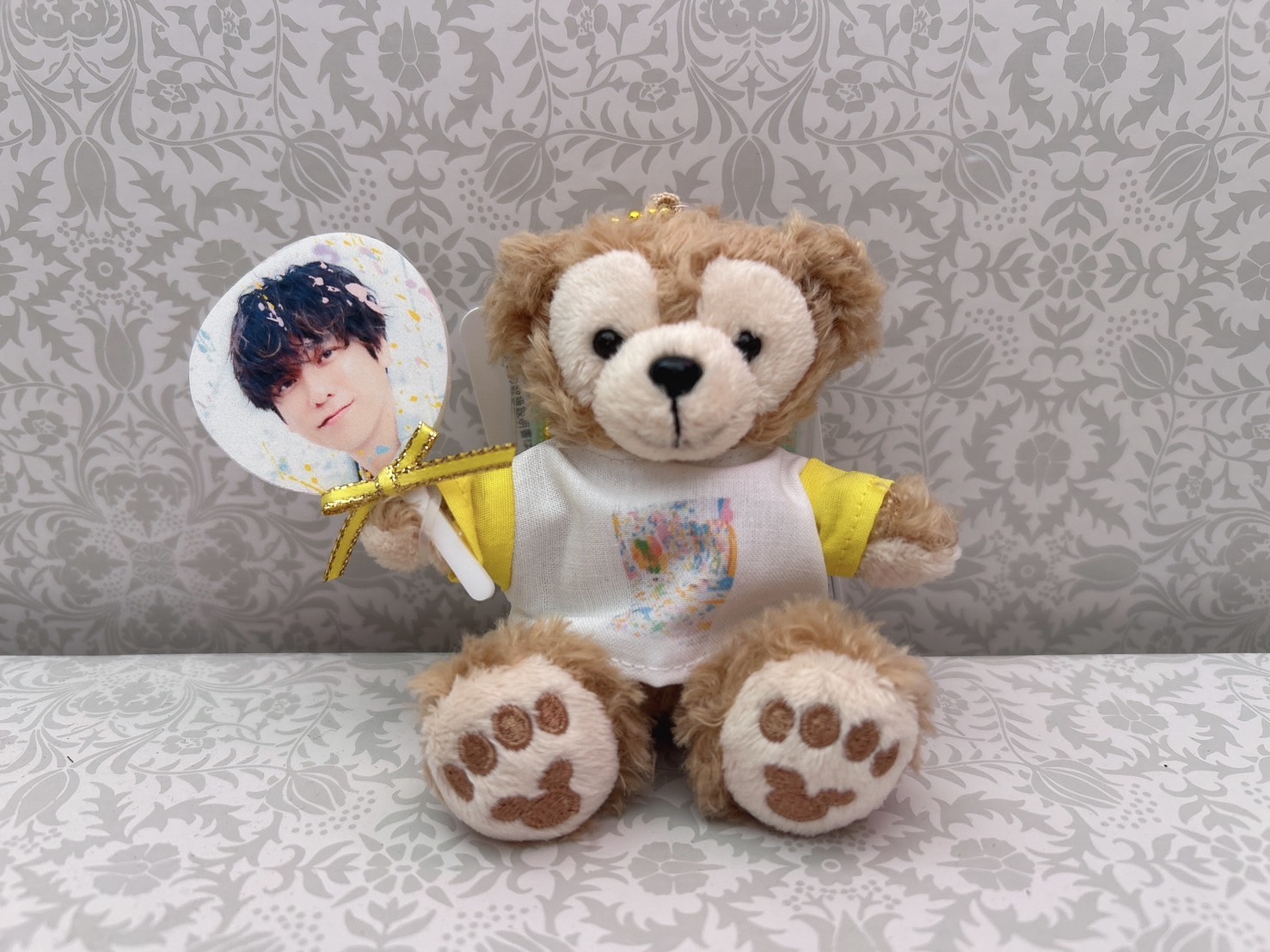 ハンドメイド作品です。約9センチストラップサイズ。ダッフィー本体付き。